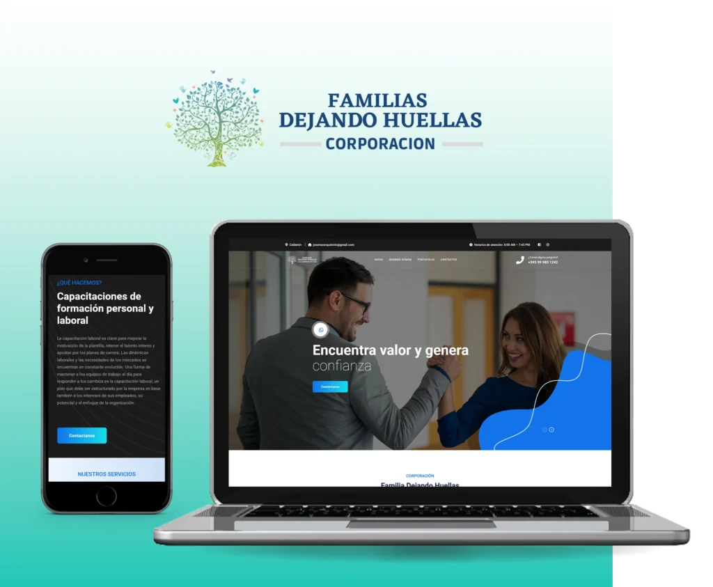 La página web diseñada para Familias Dejando Huellas, una empresa dedicada a la capacitación y formación personal y laboral de niños, jóvenes, adultos y profesionales, se centró en proporcionar información esencial de manera clara y concisa.