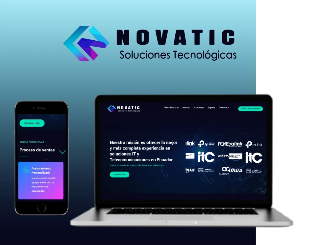 La página web está diseñada para ser clara y profesional, destacando sus servicios y productos, con un enfoque en la tecnología avanzada y el soporte al cliente. Incluye secciones sobre sus soluciones, servicios, y testimonios de clientes, lo que facilita a los visitantes encontrar información relevante y contactar a la empresa fácilmente.