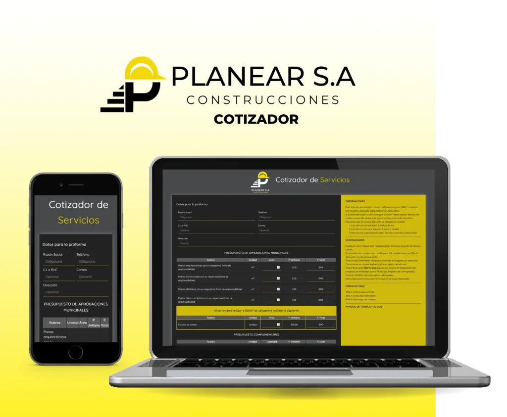 El proyecto personalizado para Planear S.A., una empresa de construcción, consistió en la creación de un cotizador específico.